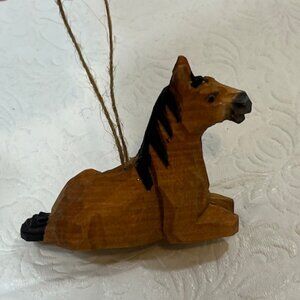 Hand Carved Sitting Wooden Horse Ornament 3"x2"
