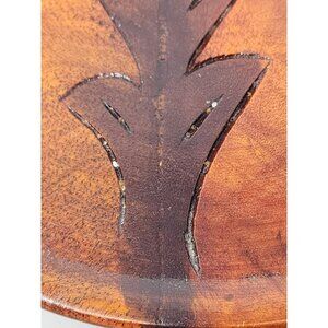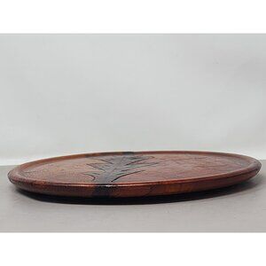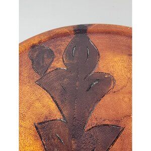Hand Carved Vintage Round Wooden Tray Wall Plaque Folk Art Design Country Kitchy