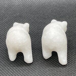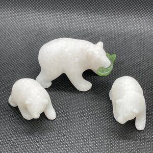 Hand Carved White Star Marble Grizzly Bear Family 3 pc Set Lot Jade Fish COA VTG