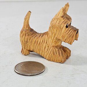 Hand Carved Wooden Dog Figurine Scottish Terrier Design Playful Pose Red Tongue