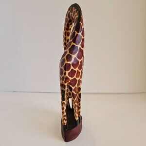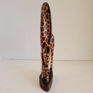Hand Carved Wooden Giraffe Statue African Tribal Art Decor 12" Tall Brown/Yellow
