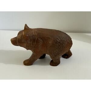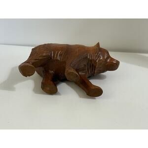 Hand Carved Wooden Grizzly Bear Figurine 6" Wide by 3.5" Vintage Good Condition