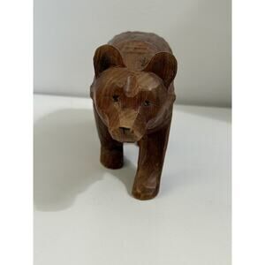 Hand Carved Wooden Grizzly Bear Figurine 6" Wide