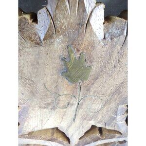 Hand Carved Wooden Kitchen Trivet Three Footed Fall Motif Gold Leaf Vintage 4.5"