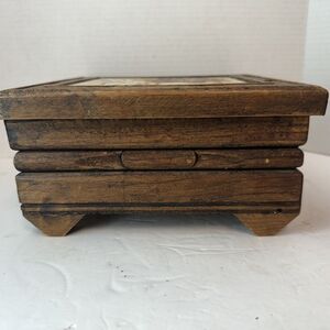 Hand Carved Wooden Mexico Box Hand Painted Floral Flower Tile Made In Italy