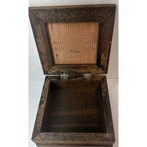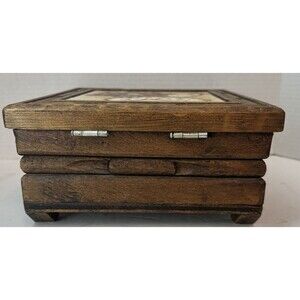 Hand Carved Wooden Box Hand Painted Floral Flower Tile Made In Mexico