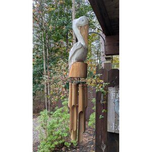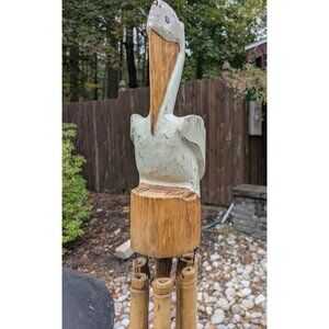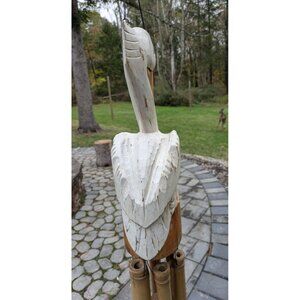 Hand Carved Wooden Pelican on Piling WINDCHIME Bamboo Chimes 46" Drop