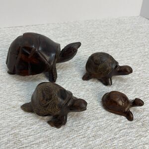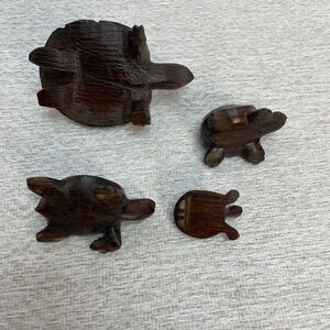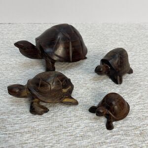 Hand Carved Wooden Turtle Figurine Home Decor Lot of 4 **READ**