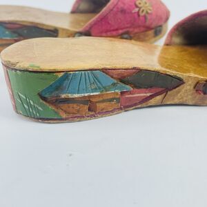 Hand Carved Wooden Wedge Shoes Philippines Tiki Small Childrens WWII VTG 1940s