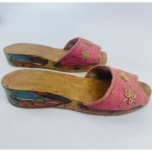 Hand Carved Wooden Wedge Shoes Philippines Tiki Child WWII VTG 1940s
