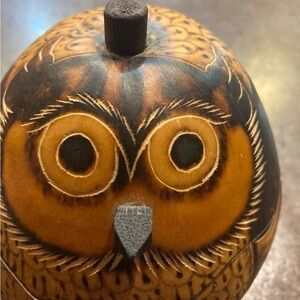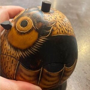 Hand Carved and Hand Painted Owl Trinket Dish Container Bowl
