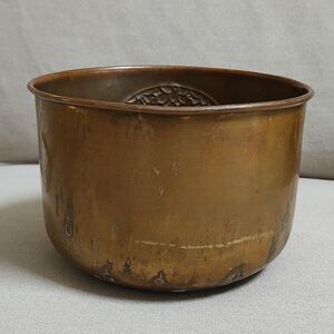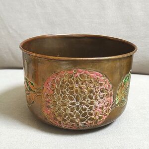 Hand Carved and Hand Painted Round Brass Cache Pot