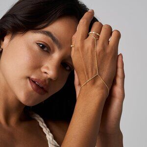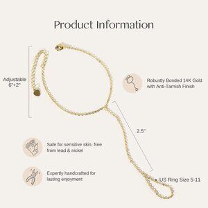 This hand chain bracelet brings a sleek, modern vibe with its minimalist gold design. Perfect for adding a touch of elegance to any outfit, whether you're dressing up for a night out or just accessorizing your everyday look.