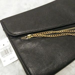 Black hand clutch with gold zip