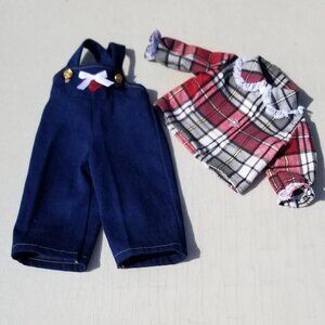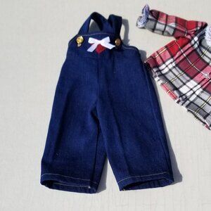 You are purchasing a cute hand crafted 18" Bib Overall and Flannel Blouse for your American Girl size doll. Never been used. Made in smoke free environment. Doll not for sale.