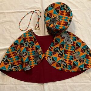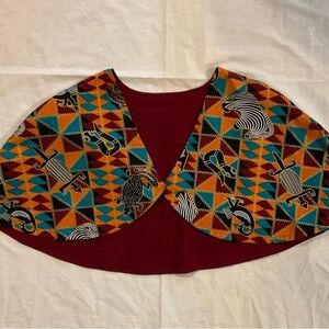 Hand Crafted Ankara African Print Capelet Sz. 16 Burgundy Turquoise Orange Lined