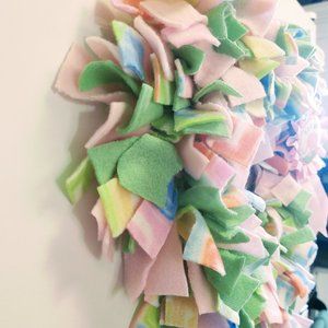 Hand Crafted Baby Girl Heart Shape Fleece Pink Green Multi Fabric Rag Wreath 16"