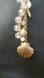 Two Gold chains with three white beads, shells, starfish, one seahorse and lots of swinging faceted clear beads hang from this gold lobster claw and small key ring. Larger shell swings from the bottom. Lots of swinging in this piece. Perfect to decorate your bag when you go to the beach or on vacation, taking a cruise or just going out to dinner. Lightweight too.
