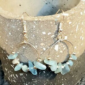 Handcrafted Baroque Aquamarine Gemstone Sterling Silver Plated Hoop Earrings