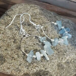 Hand Crafted Baroque Aquamarine Gemstone Sterling Silver Plated Hoop Earrings