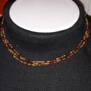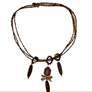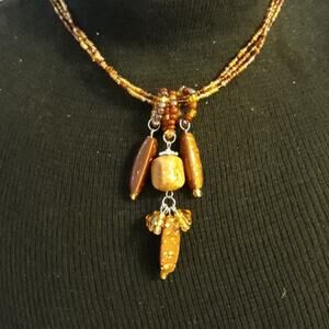 Hand Crafted Beaded Charm Necklace Triple Strand