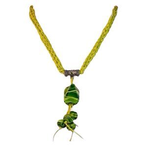 Hand Crafted Beaded Necklace Green White Glass Lime Green Macrame Cord Claw Clos