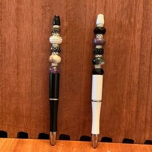 Hand Crafted Beaded Pens Set of 2 with ink refill, Ballpoint Black