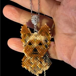 Hand Crafted Beaded Yorkshire Terrier Yorkie dog face portrait pendant w chain