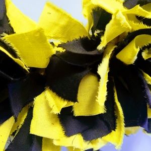 Hand crafted rag wreath made from black and yellow cotton/poly fabric.