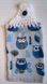 Charming kitchen towel with owl design. Features blue and white colors. Handcrafted with care.