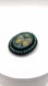 Oval glass cabachon is surrounded by black and blue seed beads and peacock green glass crystal beads.