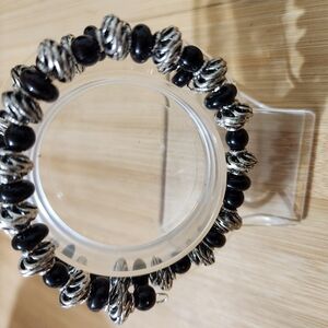 This elegant bracelet features a stunning combination of black and silver beads, perfect for adding a touch of sophistication to any outfit.