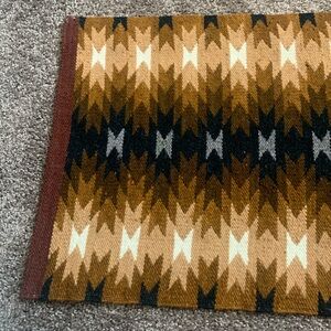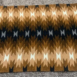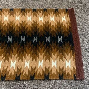 Beautifully woven tapestry, rug or wall hanging with geometric patterns. Rich brown and cream tones. Perfect for adding warmth to any room.