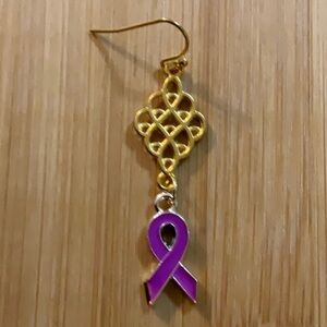 Hand Crafted Cancer Awareness Drop Pierced Earrings Lavender All Cancers
