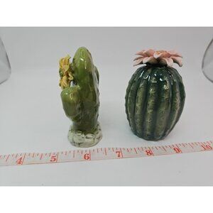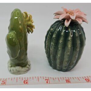 Hand Crafted Ceramic Cactus with Flowers Salt & Pepper Shakers, Home Décor, Gift