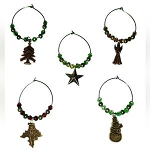 Hand Crafted Christmas Wine Charm Set