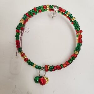 Hand Crafted Christmas Wrap Bracelet Jingle Bells Red Green Gold Memory Wire