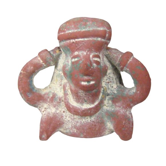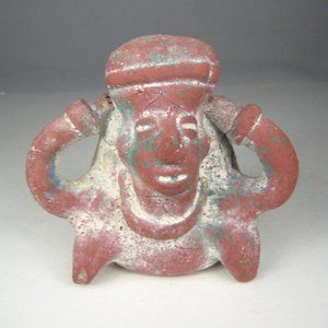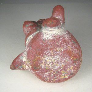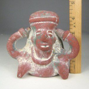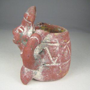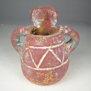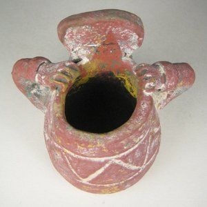 Hand Crafted Clay Figurine Pen Holder Folk Art 4.5 In Tall Rustic Ceramic
