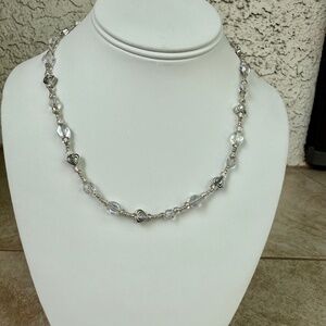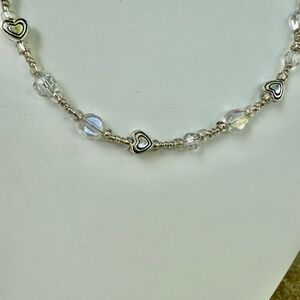 Hand Crafted Clear Beads and Silver Hearts Necklace