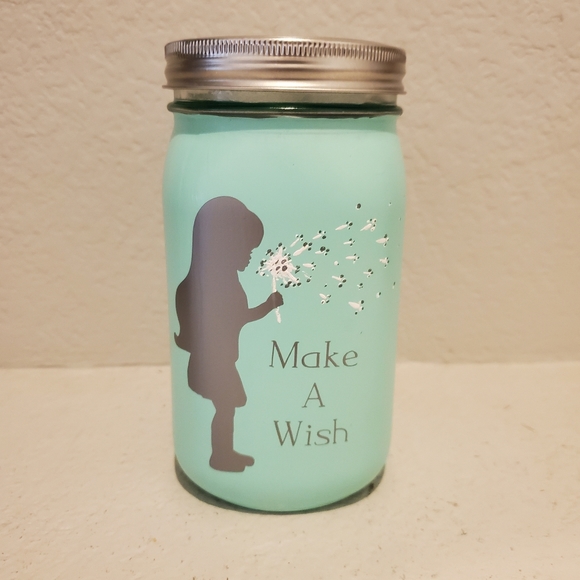 Mint green mason jar with coin slot top. Make a Wish with every coin saved ❤ This is hand crafted so small imperfections can be expected.