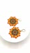 Fun handmade beaded earrings with red, orange, yellow and turquoise seed beads woven into a beautiful big flower pattern.