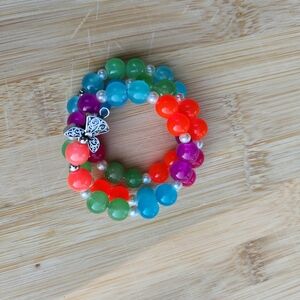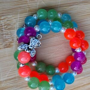 Hand Crafted Colorful Beaded Memory Wire Bracelet with Angel Charm
