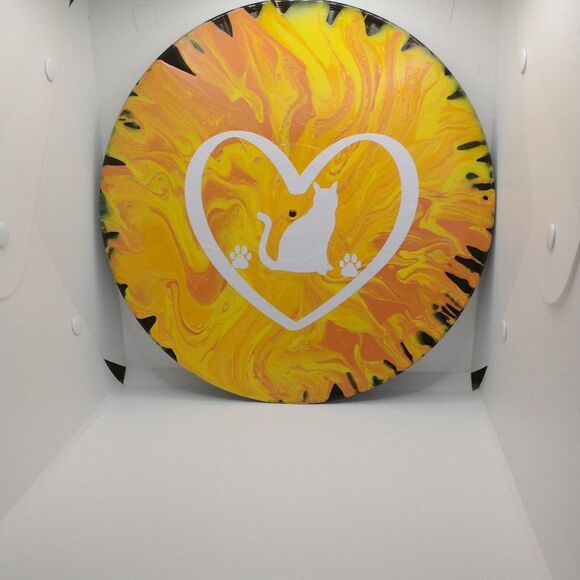 Hand Crafted Colorful Cat Fluid Art Painting On 12" Vinyl Record