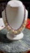 Hand Crafted Cream Cowrie Shell Necklace with Purple and Gold Beads 18.5 inches