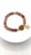 Fun handmade stretch bracelet with 8mm sunstone gemstone beads and featuring a brown imperial jasper heart center pendant.