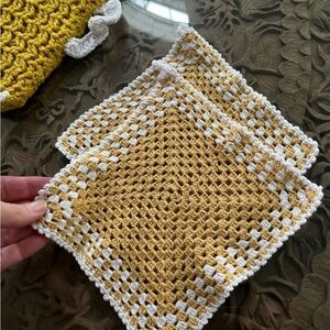 Hand Crafted Crochet Beer Mug ⚜️ Kitchen Set of 3 Pot Handles Gold New Orleans