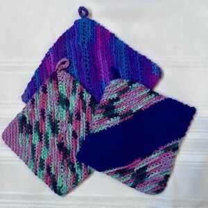 Hand Crafted Crochet Hot Pad Pot Holders Set of 3 NEW