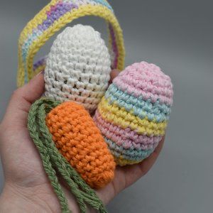 Hand Crafted Crochet Kitty Cat Easter Basket with Three Catnip Toys