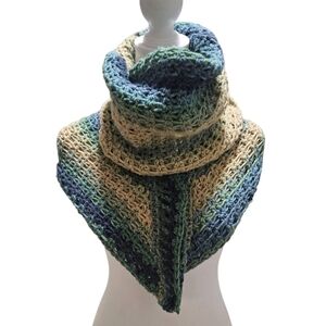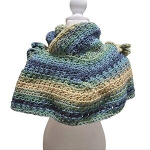 Hand Crafted Crochet Multicolored 10-way scarf winter hoodie handmade blue shawl
