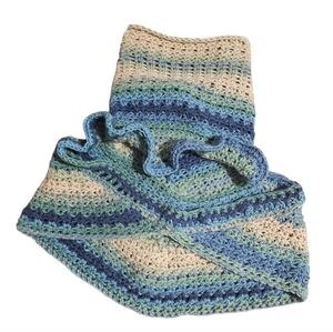 Closed loop scarf & wrap made with Loops & Threads Yarn color# 214028 Jolly Ombré 100% cotton shades of dark blue, turquoise, green, and light brown